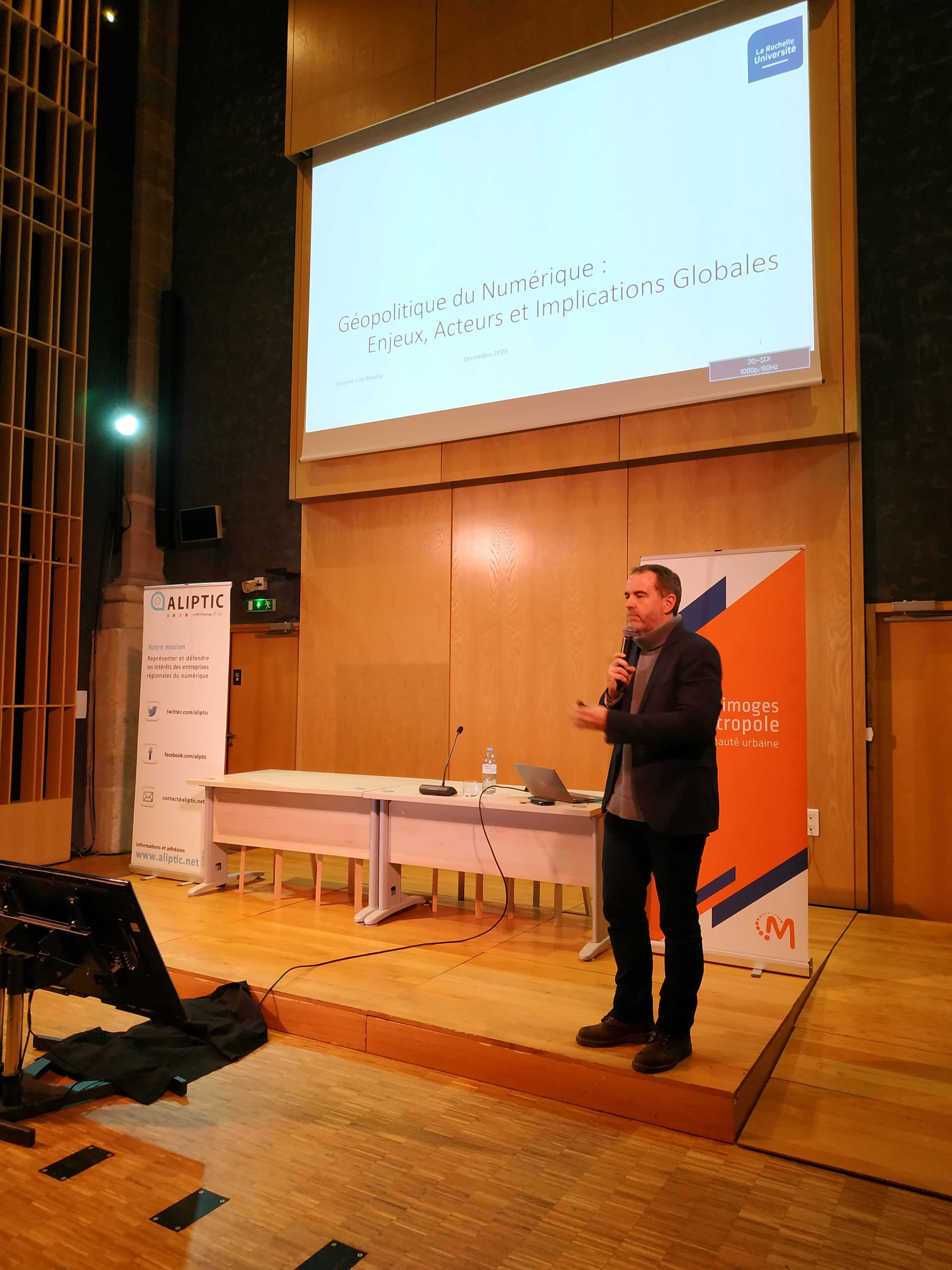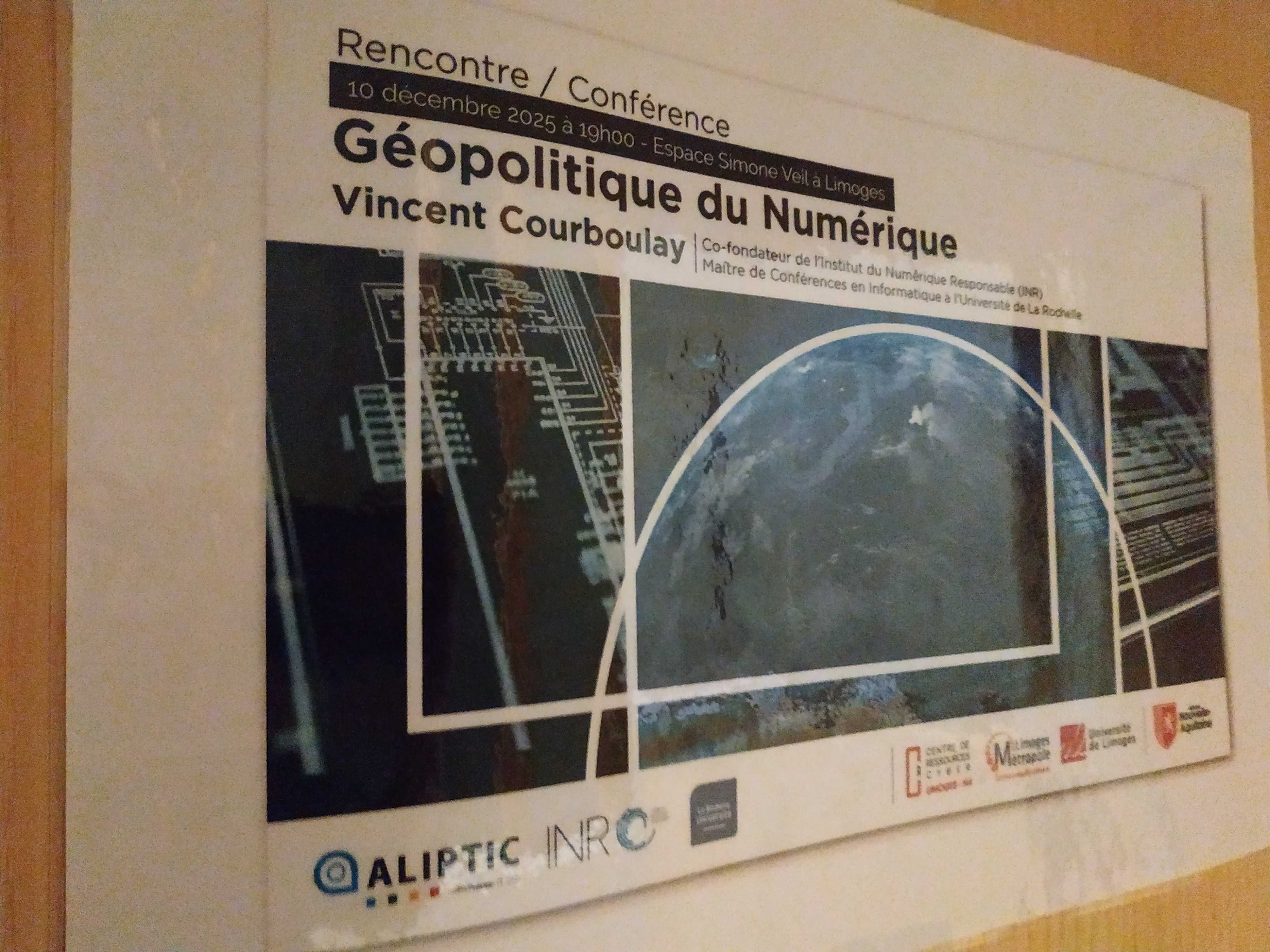 Vous étiez près d'une centaine inscrits à cette soirée de fin d'année dédiée aux enjeux géopolitiques du numérique animée par Vincent Courboulay, Ingénieur et maître de conférences en informatique à l’Université de La Rochelle.