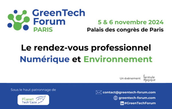 La prochaine édition de GreenTech Forum se tiendra les 5 et 6 novembre 2024 au Palais des Congrès de Paris.