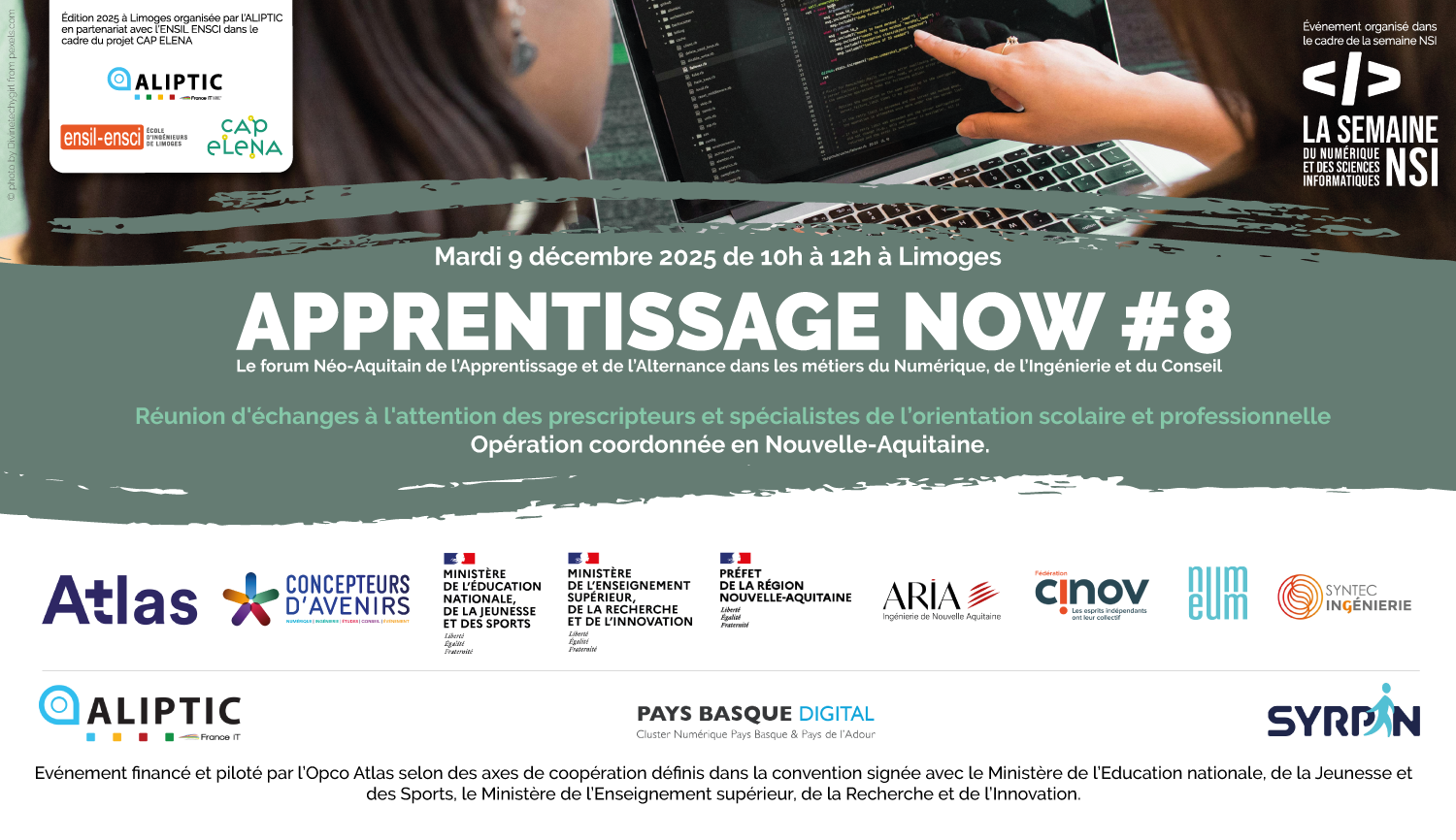 Pour la 8ème année consécutive, les clusters numériques de Nouvelle-Aquitaine organisent l'opération Apprentissage Now, un événement de valorisation des formations au Numérique et à l'Ingénierie en apprentissage et en alternance !