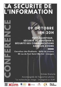 Domaine spatial, Sécurité de l'information et Santé, ces 3 thématiques au coeur de l'actualité vous seront présentées par des enseignants-chercheurs et chercheurs du laboratoire XLIM.