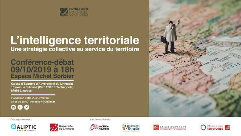 La Fondation Partenariale de l’Université de Limoges et son membre fondateur ALIPTIC, organisent le mercredi 9 octobre une conférence intitulée « L’intelligence territoriale : Une stratégie collective au service du territoire ».